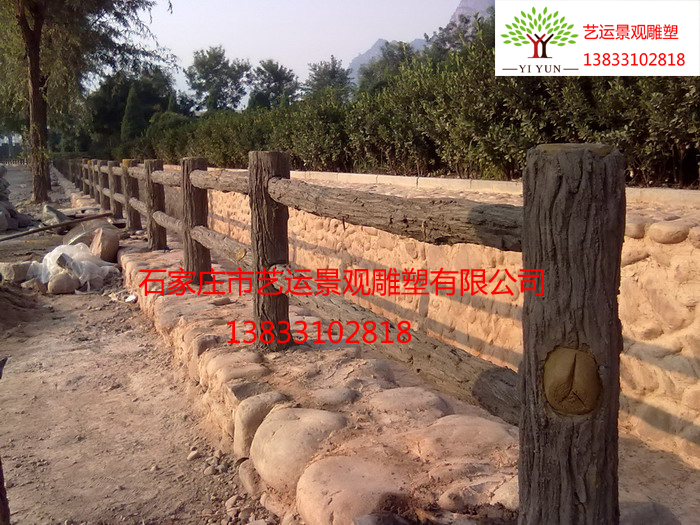 仿木欄桿以鋼筋混凝土為主要原料,技術(shù)師現(xiàn)場焊接再塑造外形。具有色澤、紋理逼真;堅固耐用;免維護(hù);防偷盜等優(yōu)點。