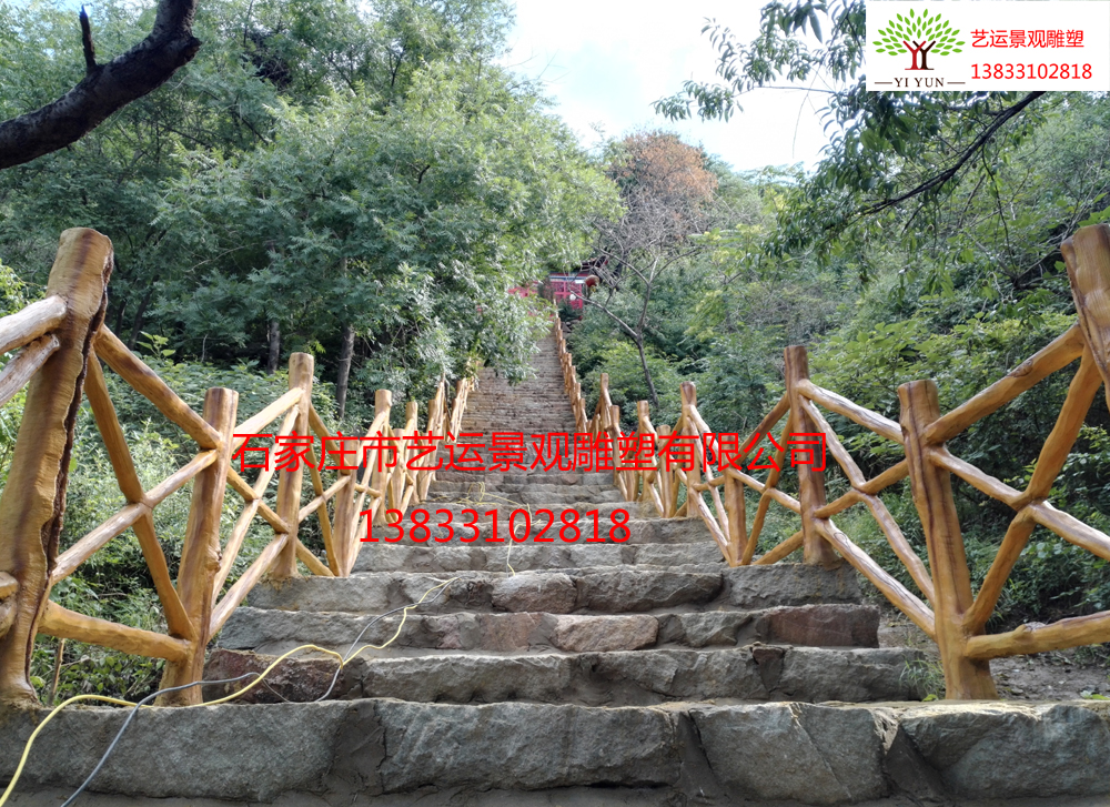 旅游景區(qū)仿木欄桿:以鋼筋混凝土為主要原料。景區(qū)大山里的仿木欄桿藝運(yùn)景觀在現(xiàn)場(chǎng)施工,現(xiàn)場(chǎng)焊接鋼筋骨架再制作造型,整體焊接施工更堅(jiān)固,具有色澤、紋理逼真;堅(jiān)固耐用;免維護(hù);防偷盜等優(yōu)點(diǎn),與自然生態(tài)環(huán)境搭配非常和諧。仿木仿石園林景觀產(chǎn)品既能滿足園林綠化設(shè)施或戶外休閑用品的實(shí)用功能又美化了環(huán)境,深得用戶喜愛(ài)。
