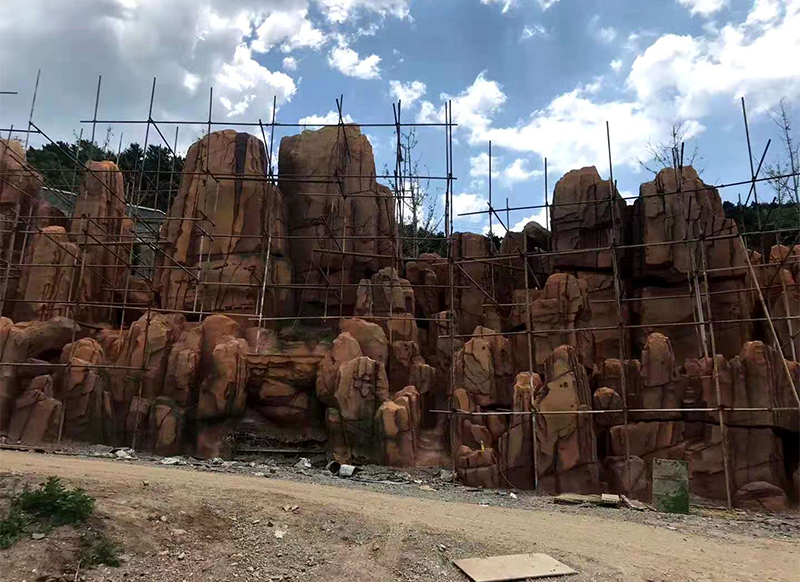 根據(jù)設(shè)計對石色的要求,刷涂或噴涂顏色,令其達到設(shè)計效果為止。由于新材料新工藝不斷推出,第三四步往往合并處理。如將顏料混合于灰漿中,直接抹上加工成型。當(dāng)整體成型達到要求后,對接縫及石脈紋理作進一步加工處理,即可成山。