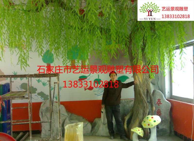 幼兒園仿真柳樹景觀非自然樹種,是一種假樹。藝運(yùn)景觀雕塑師用獨(dú)特的手法塑造而成,以在特定場合展現(xiàn)自然界樹木真實(shí)效果的裝飾品。特點(diǎn):造型奇特,受空間限制小。無需水土、養(yǎng)分,易于養(yǎng)護(hù),不受自然氣候的影響。形態(tài)逼真,客戶可根據(jù)自己的喜好隨意定制造型,四季長青。