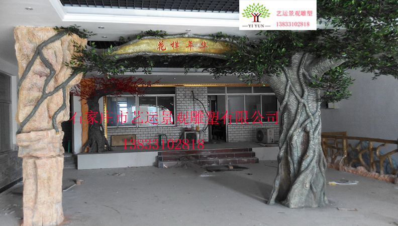 室內(nèi)假樹跨度大門是由鋼筋,水泥,沙子為主原料制作而成的景觀大門,經(jīng)由多年制作經(jīng)驗(yàn)的技師塑造而成,成品后紋理清晰,自然,完全仿制大自然樹木進(jìn)行模仿,從而達(dá)到在水泥表面塑造出樹的紋理、裂縫。完成后的作品效果逼真,是現(xiàn)代很受歡迎的景觀裝飾。