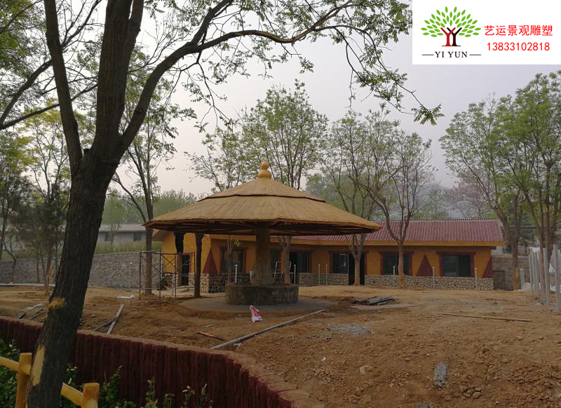 工程項(xiàng)目:水泥仿木涼亭,仿木房屋、仿木欄桿等園林景觀工程。